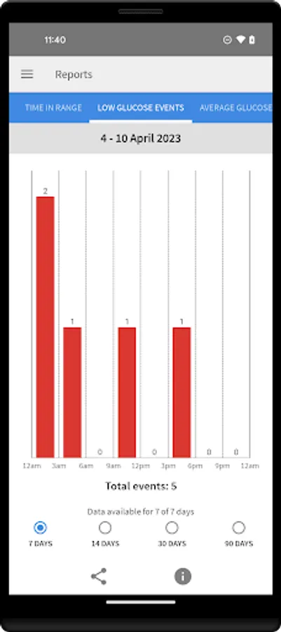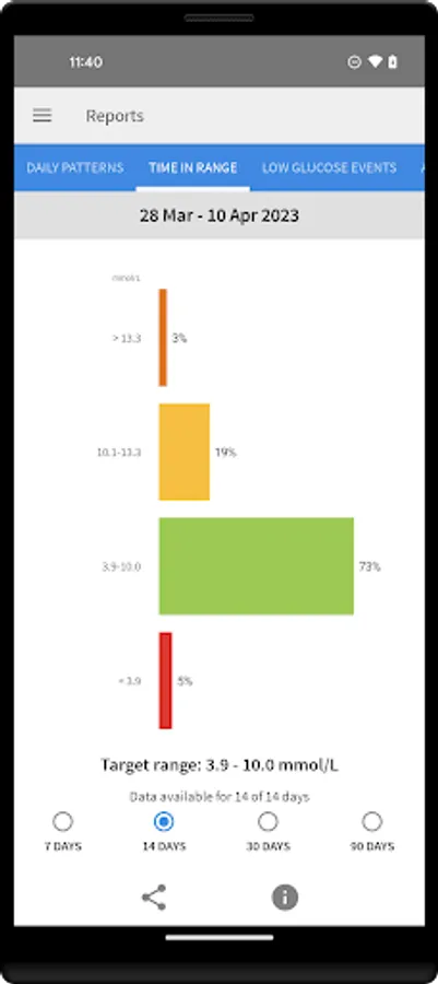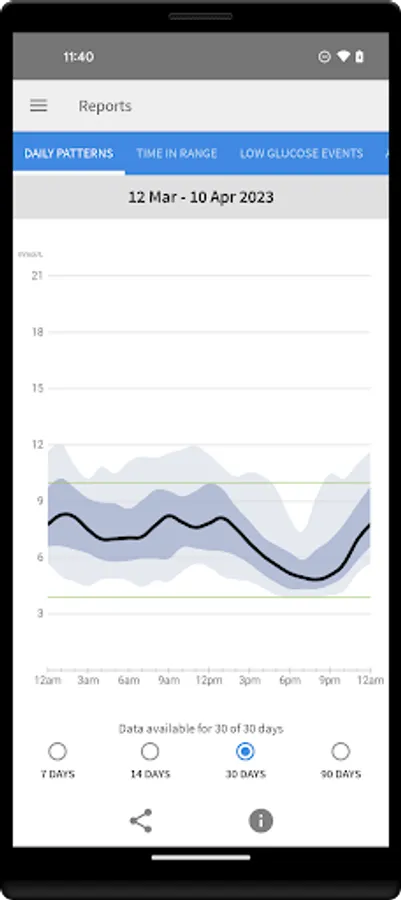 * See reports, such as Time in Range and Daily Patterns