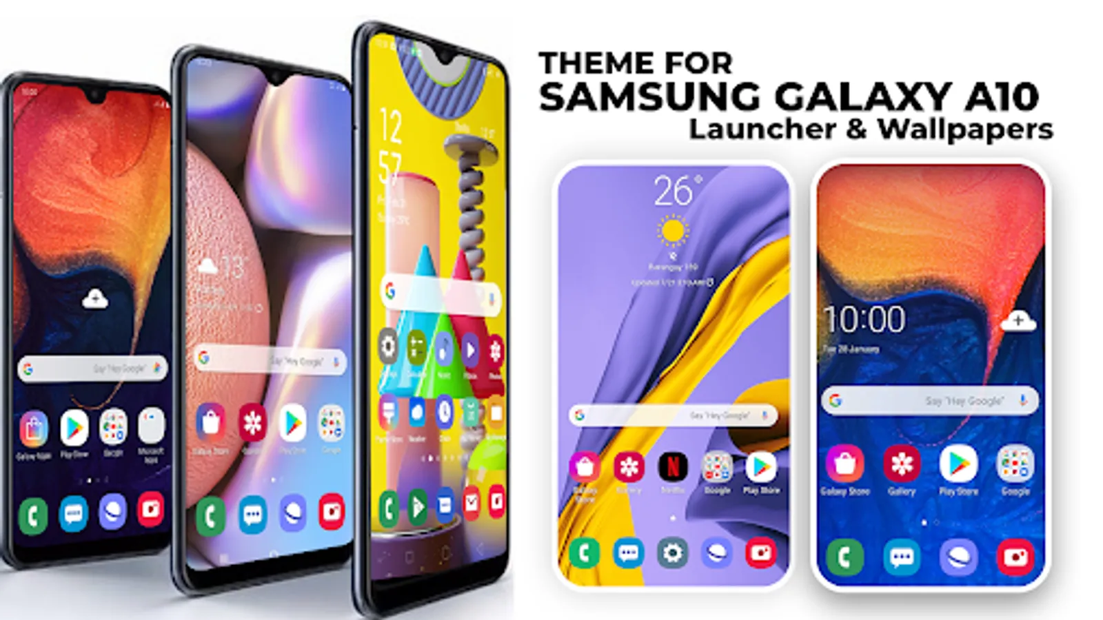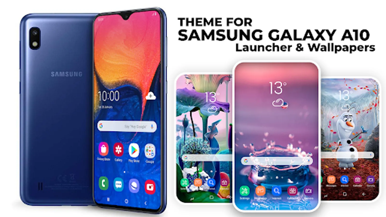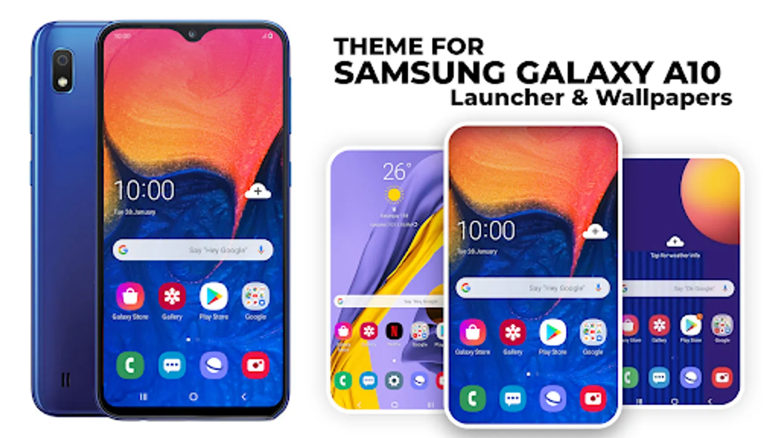 Download it for free and get the stock wallpapers of the Galaxy A10 and custom icons. the wallpapers works with stock UI while to apply the icons you need to have a custom launcher, and this theme for Samsung Galxy A10 support almost all the launchers available on the play store.