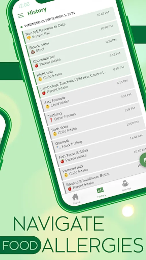 Allows users to track parent and child's food intake, especially vital for breastfeeding families. The log also features symptom and stool input with picture uploads. This provides a seamless space for parents to easily look for reaction trends, track food trialing, and annotate day/times for food trialing passes and fails. All of this information is shown in an easy to read history tab or exported into an excel spreadsheet which can be sent to your medical provider.