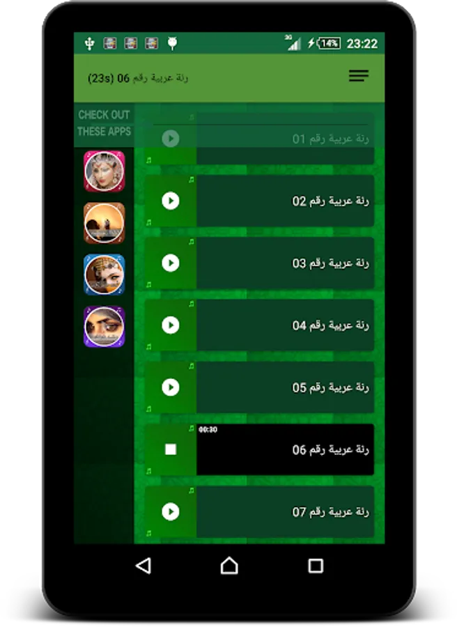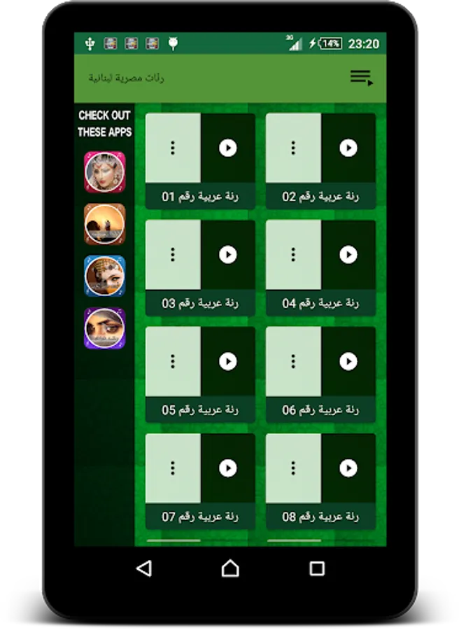 The application includes a quiet romantic music, the coolest telephone rings, ring tones and tones Egyptian, a new Arab Lebanese mobile tones of famous artists: