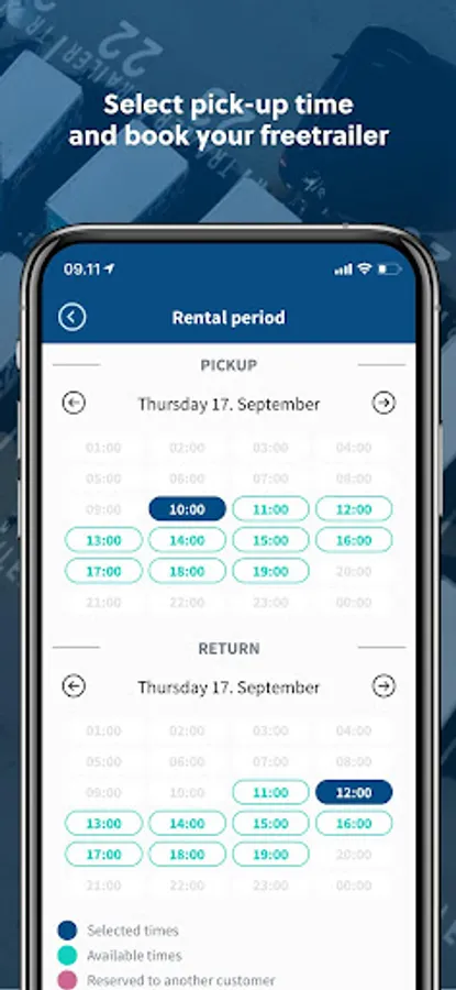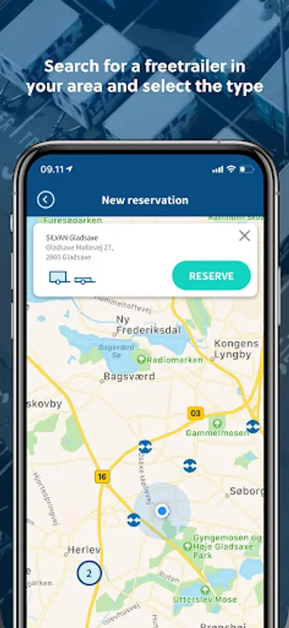 The app will show you the closest available Freetrailer. You can make an easy reservation or pick up the trailer directly from the rental location with the help of the app.