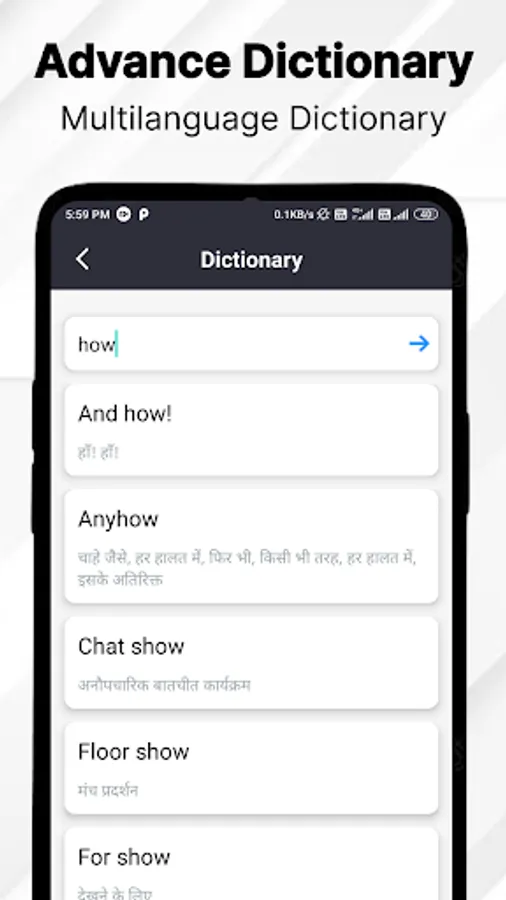 Want to learn English form Hindi or any other languages then you are on the right app. install this all language translator app 2023 to translate any text to any languages.