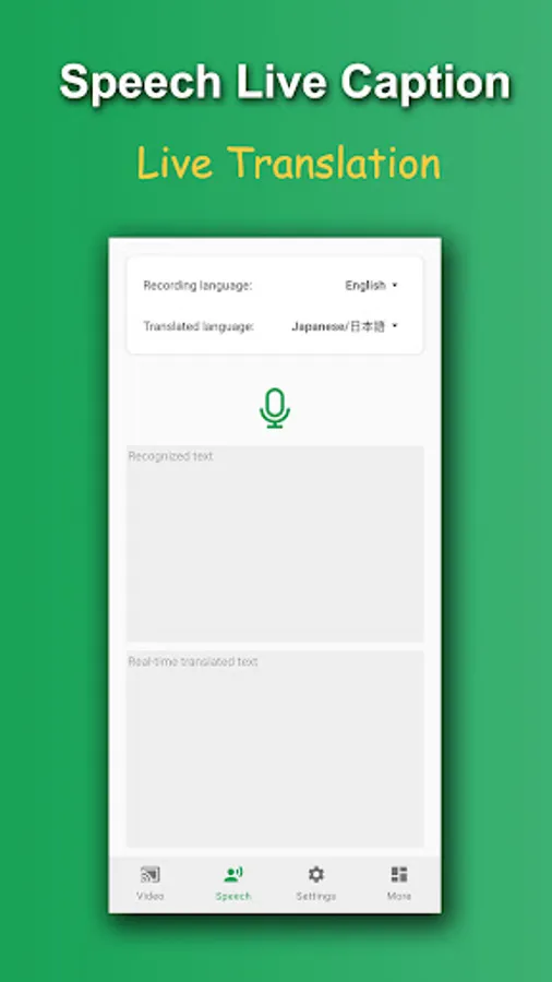 2. Record speech, recognize text in real time, and translate into other languages, suitable for dialogue and travel conversation