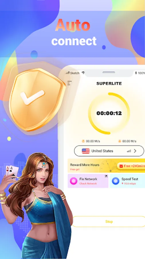 With superlite vpn, your IP address is hidden and all your network traffic is effectively encrypted, ensuring the privacy of your personal data.