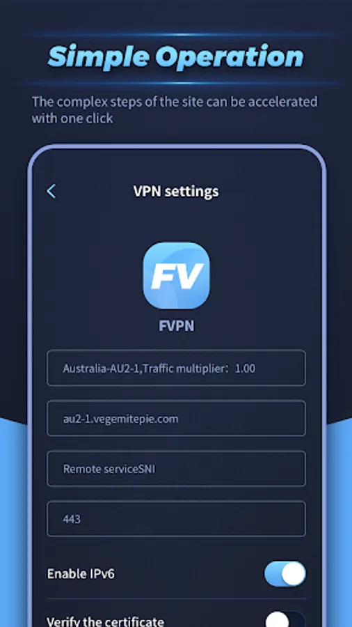 FVPN only provides data forwarding, and will not tamper, decrypt, or transfer your Internet data at any time.