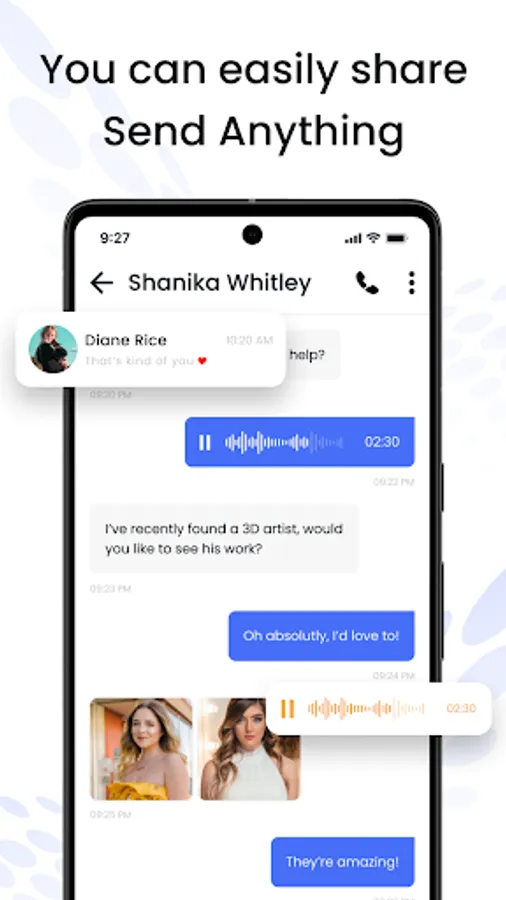 Enhance your conversations with multimedia messages. Share photos, videos, voice messages, and stickers to make your chats come alive. Messages let you express yourself in ways words alone can't capture.