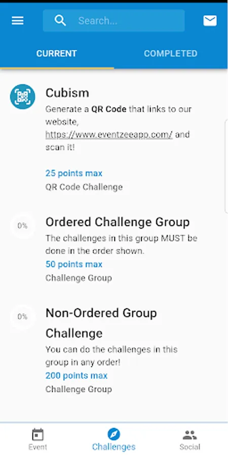- Eventzee offers the most challenge of any scavenger hunt app on the market: Photo, Video, Quiz, GPS, QR Code, Text and Information