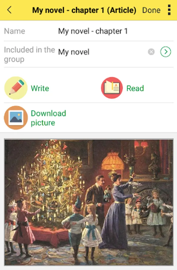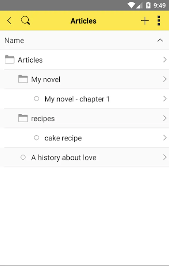 All information is stored in the form of a tree and structured to suit your needs. For each Chapter of your book, article or recipe you can attach a picture (cover).