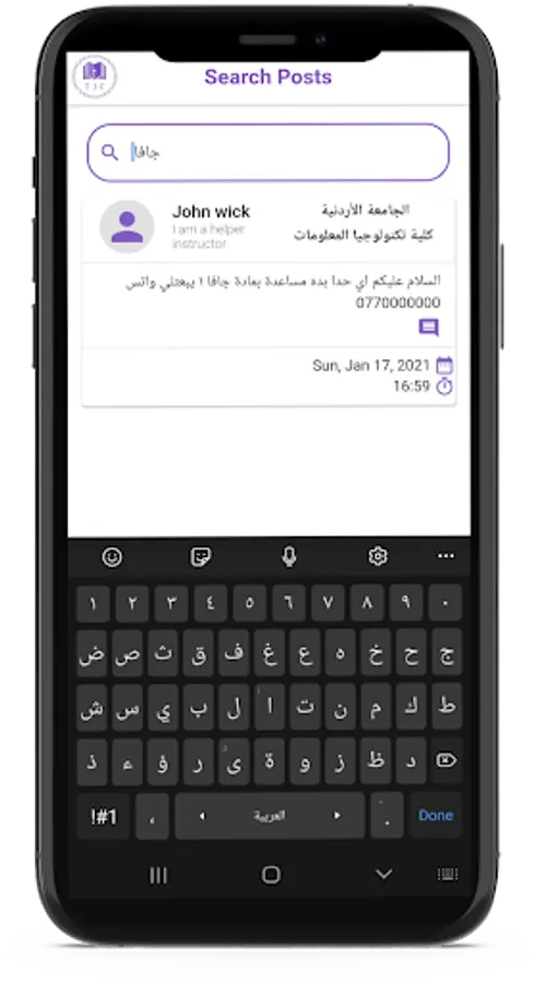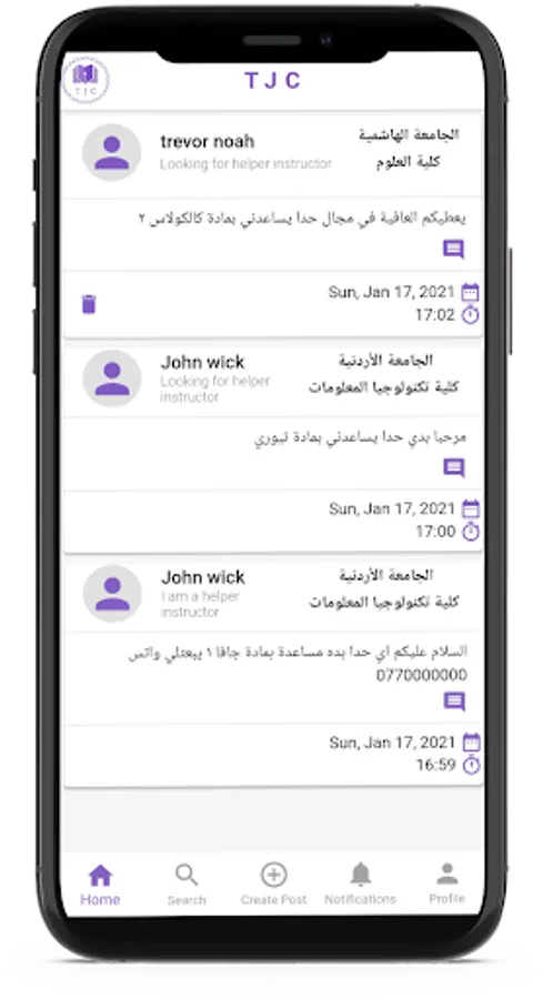 TJC is an application that is designed for jordanian universities students that helps them to communicate with each other for finding help in their study