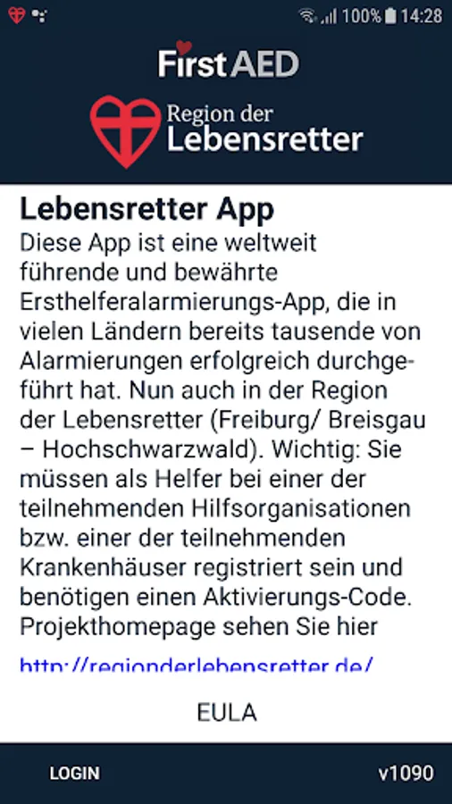 This app is a world-leading and proven first aid alarm app that has already successfully carried out thousands of alarms in many countries under the name FirstAED. Now also in the lifesaver region (Aalen, Biberach, Freiburg / Breisgau-Hochschwarzwald, Heidenheim, Rems-Murr, Ulm). Important: You have to be registered as a helper with one of the participating aid organizations or one of the participating hospitals and need an activation code.