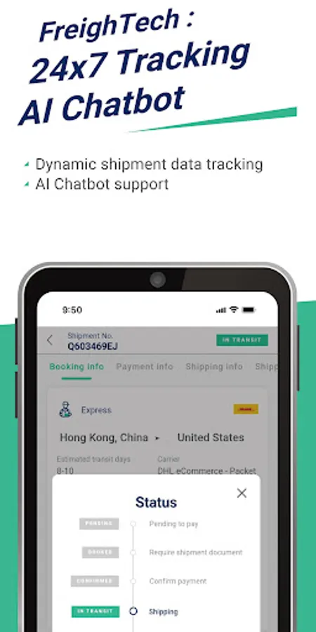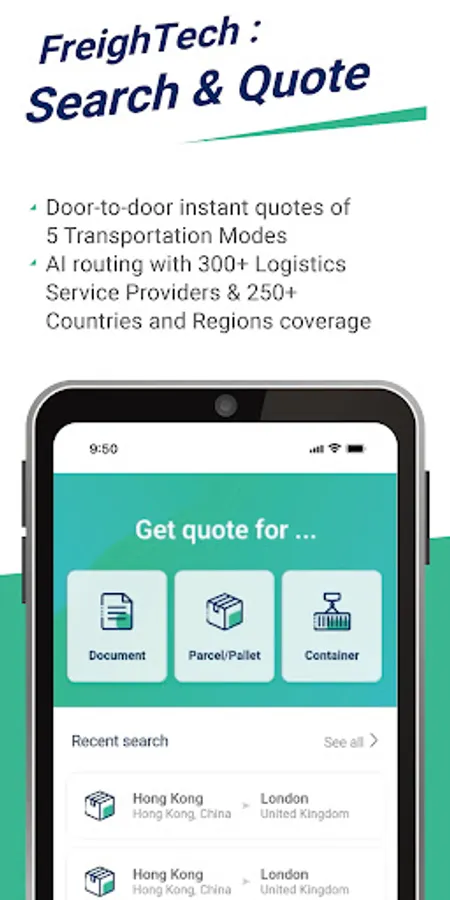 - Speed Up: Only 3 mins to arrange a shipment (Search-Quote-Book-Pay)