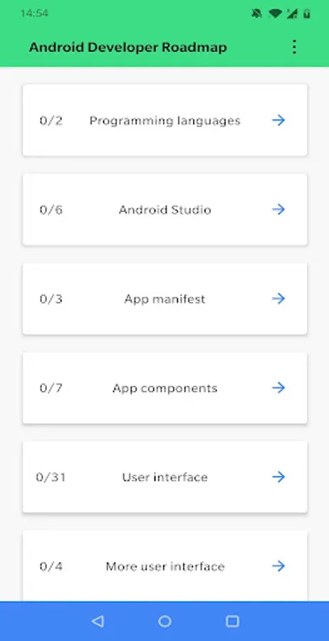 Android developer roadmap contains alot of programming subjects which are essential for every android developer. Android developer roadmap also offers a recommended path working your way from top to bottom for learning android development.