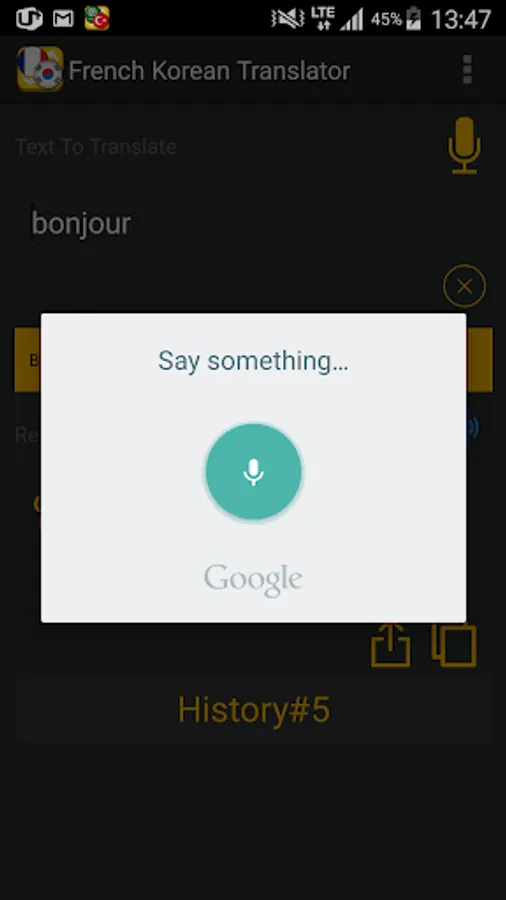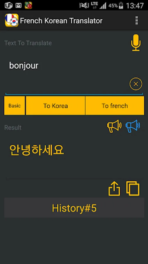 It is Super Simple and Fast French Korean Translator Translator by Microsoft & Yandex Translator api.