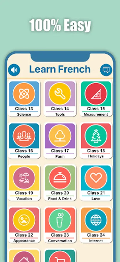 Learn how to speak French with lessons, courses, audio, activities and quizzes. Including French Alphabet, phrases, vocabulary, pronunciation, parts of speeches, grammar and many more. The App is divided in several classes to give you the easy and quick learning experience.