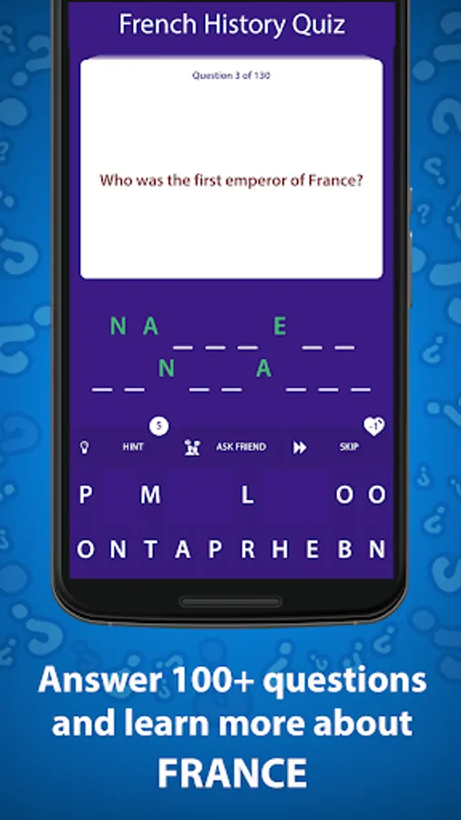 FRENCH HISTORY QUIZ GAME FEATURES: