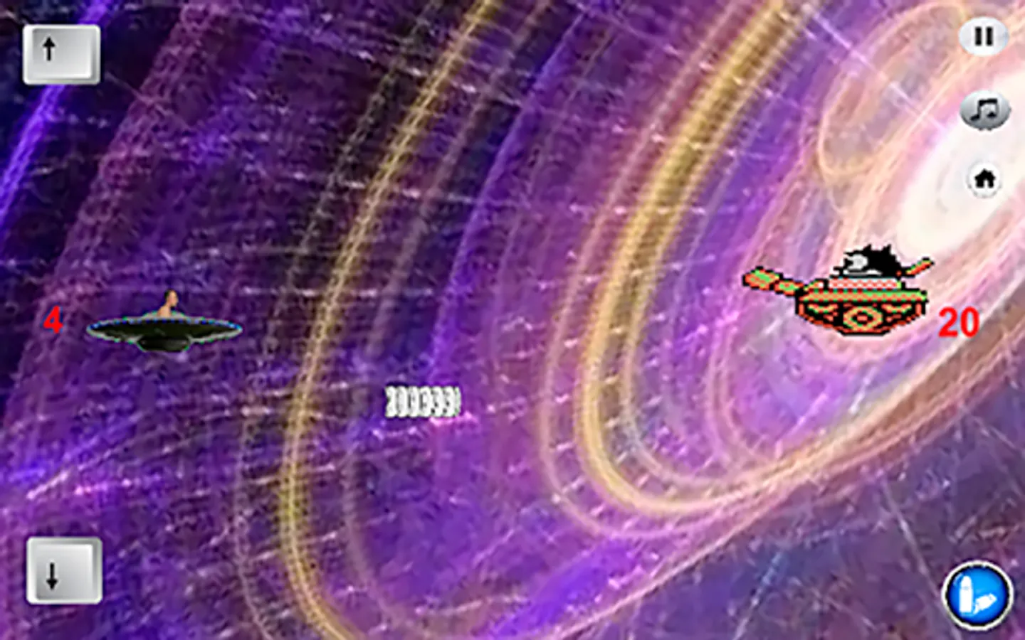 Cosmic Groin shoots bumps from a space dish at Cat Epifan, who shoots his trachea from a tank