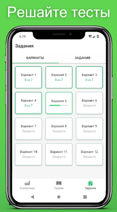 In this application, you can study the theory for each task in the exam, as well as solve practical test tasks.