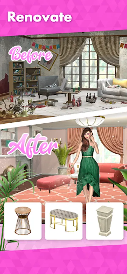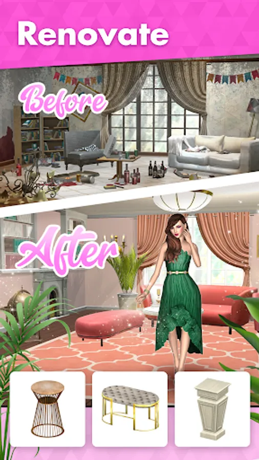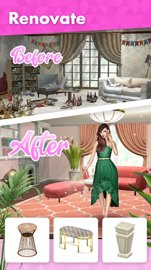Get ready for our new fashion match game! Bored of easy dressup games with plastic dolls and no competition? We made this super stylish puzzle game with match 3 challenges. Imagine unparalleled, stylish match 3 with fashion battles and dress up games… Then this family style makeover game is for you! In the modern world, match 3 makeover games are found everywhere. But this fashion makeover game on Google Play is a story game! Dressing up virtual dolls and celebrities with attractive fashion makeovers and match 3. No more simple dress up dolls games - this is a fun match 3 fashion designer game! Girls, do you want a super stylist pair matching dress up game? This is the one! Style a perfect look of makeup design and hair makeover in this matching puzzle game. Your duty is room decoration and house decoration along with a match 3 dress up game!