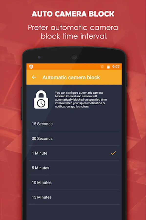 ✔ Block and protect camera by single tap on widget or notification. (Pro feature)
