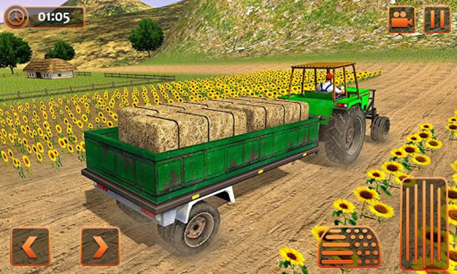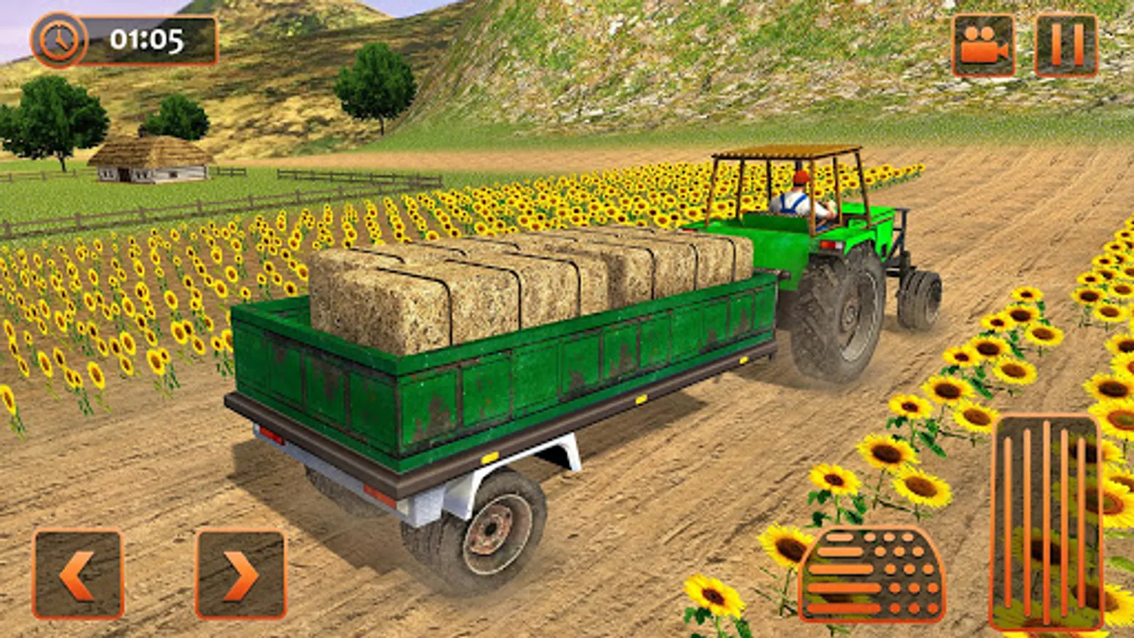 This tractor farming simulator game is an ultimate test for heavy tractor drivers. You can play chained tractor games to improve tractor pulling precision skills by controlling the speed of tractor trailer while climbing hill and village farms. As a farm tractor crew driver, you need to supply logistics like a haystack, rice, wheat, corn, water tankers and wooden logs to the hill station. Be the best logistics transporter by playing offroad tractor farming simulator game!