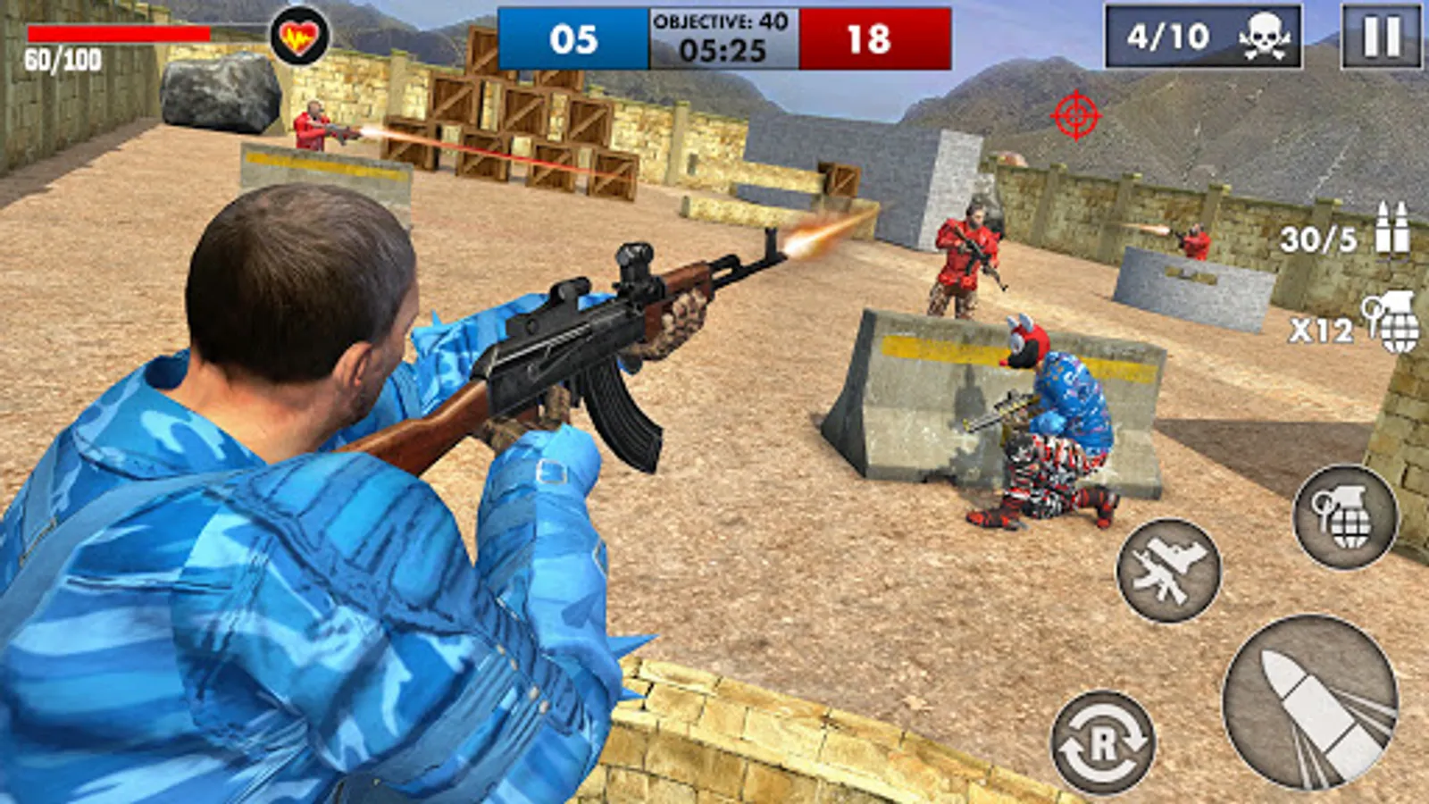 Are you ready for a new action shooter game? If yes then pick up your favorite weapon and show your shooting skills in a cover shoot game. This action game is especially for those who love to play thrilling action games. In this best cover shooter game, you will found real action and adventure. The survival battle is not easy because every enemy is well trained and having combat skills. In a modern PVP game, your duty is to find the enemy's camp and destroy them to save the civilians from terrorists.