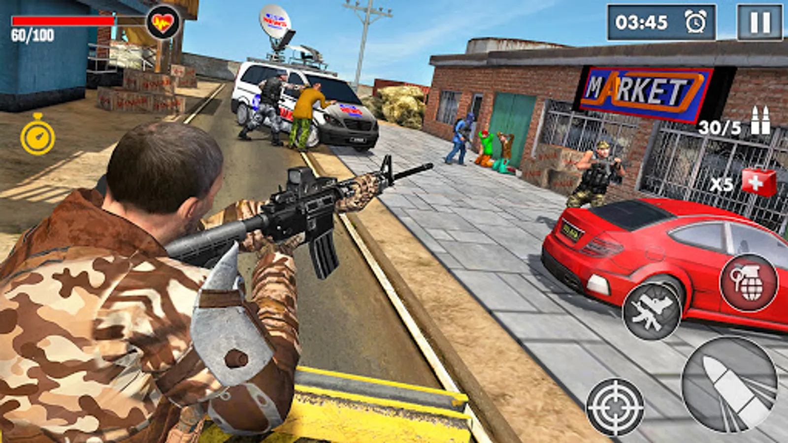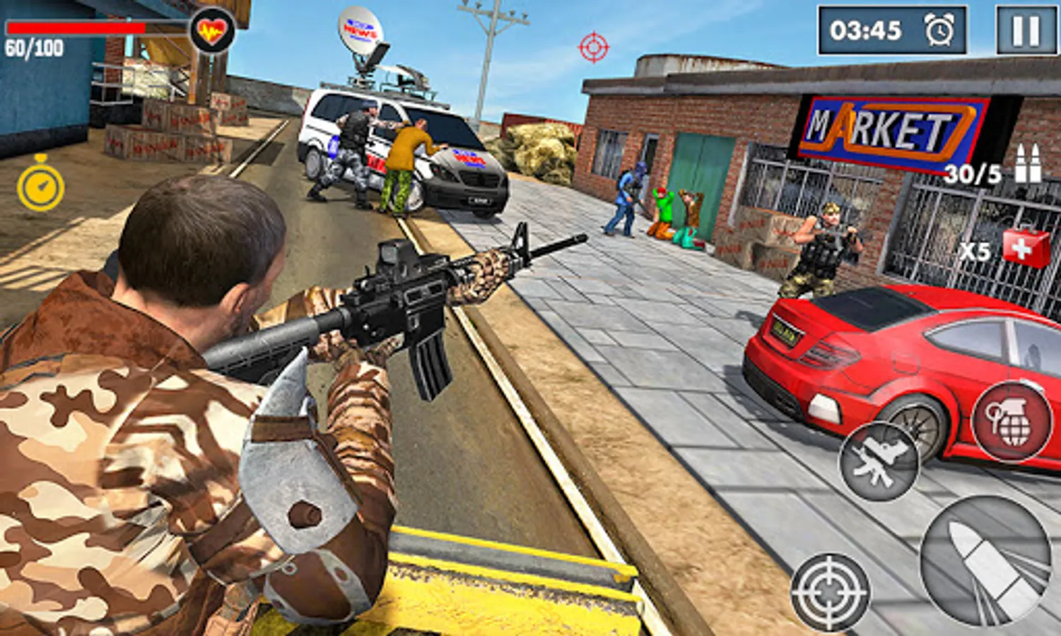 In this army battle, your duty is to fight with the enemies for the country, stay hidden from terrorists at first sight and be a hero of the frontline. Play as a commando shooter who can shoot, run, and fight in tough combat affairs. Go ahead and take action in the frontline battleground to become the survival shooter in the modern combat arena. As a third-person shooter, your life is in danger so fight against gun war games, using cover firing in adventure games to secure innocents.