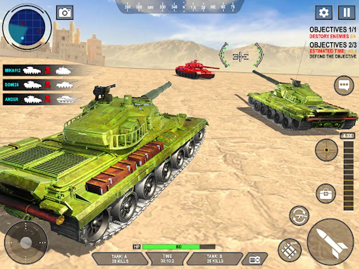 Get ready for intense tank combat in "Tank War Mode", where you'll drive your powerful military tank equipped with advanced weapons and missiles, to take down enemy tanks and become a legend in this fast-paced, action-packed game. Join the ranks of tank warriors and engage in explosive tank battles, where your skills and strategy will be put to the test. Tank War Game is the ultimate tank shooting for fans of military action. Get ready to be at the forefront of the battle and become a hero in this epic tank war.
