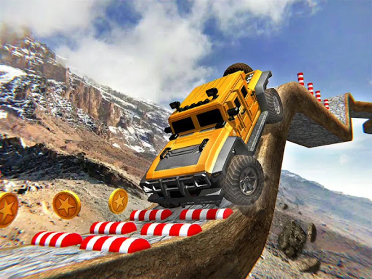 Press the race paddle to accelerate and brake paddle to slow down. Stay on the bumpy roads and reach the destination before you run out of time. Drive fast to make sky-high jumps and earn coins to unlock new driving vehicles.