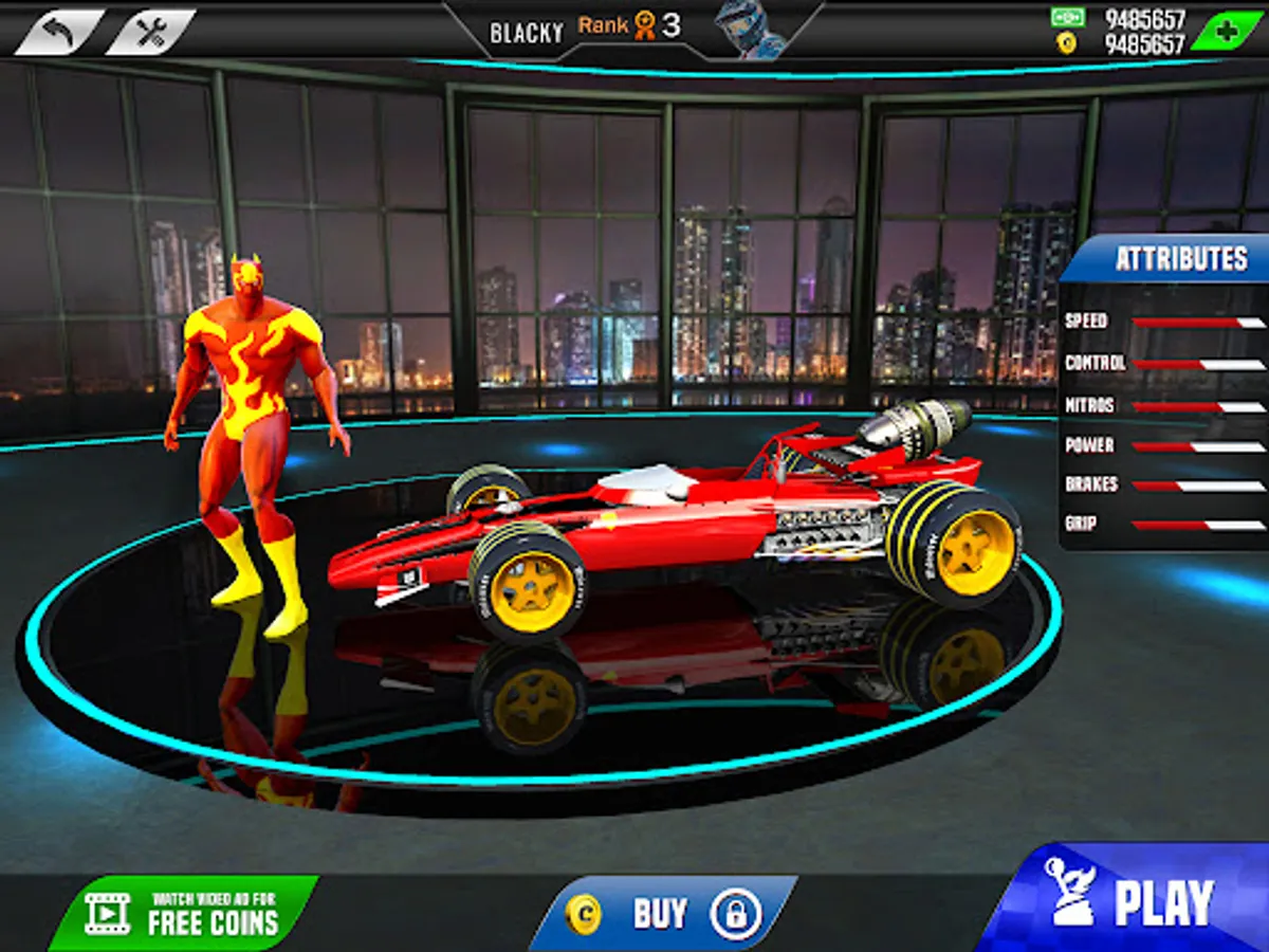 Join your dancing avatars and get luxury racing cars from the garage. Hoop in and speed away! Select any environment from a galaxy, hills, and city. A realistic driving simulator and car jumps will make your heart pump. To enjoy the game, test your extreme stunt racing skills and use direction keys to move the car around. Drift along with the fellow racers and hit their vehicles down the ramp.