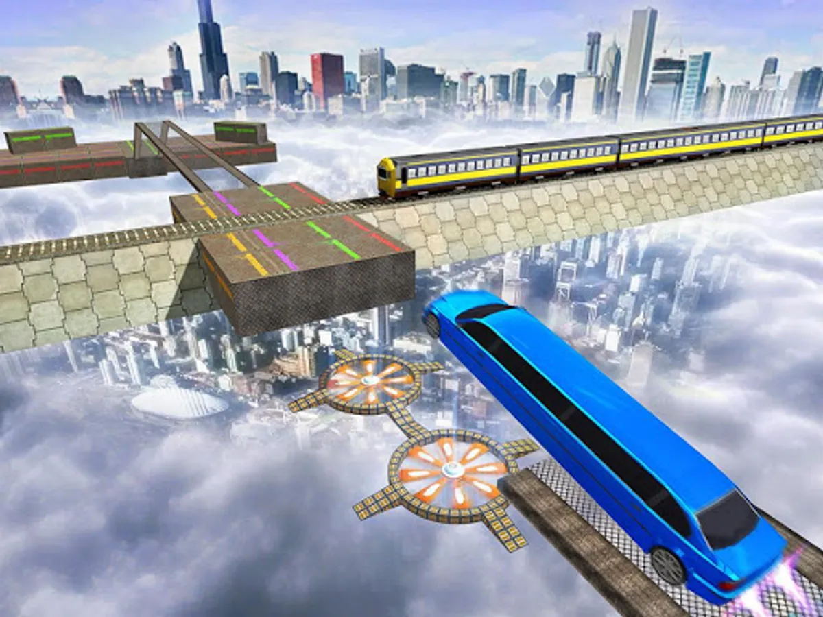 Get into the sophisticatedly long limo cars and drive them on mid-air ramps to perform crazy stunts. While driving luxurious beauties on vertical tracks make big jumps over the ships and trains. Become a professional limo driver of grand ramps to improve impossible rally driving skills. Climb the zigzag and curvy pathway to master the tricky roads that are dangerous and hard tracks. Fly over the mid-air ramps with a stretch limo and avoid any crash while parking limo from crazy heights.