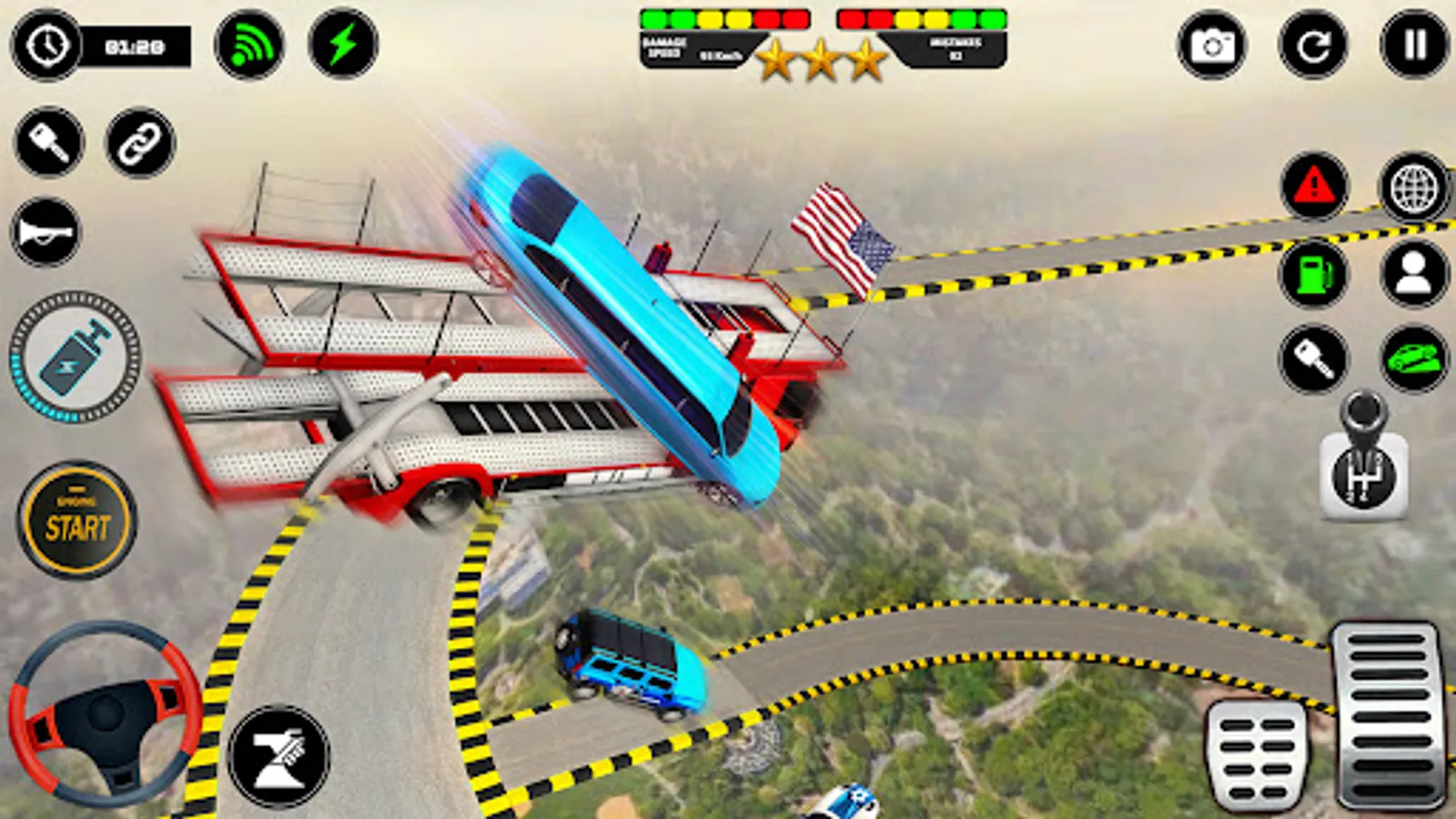Sky-high driving with heavy vehicles is a big responsibility for you. Where you can transport heavy vehicle trucks on massive heights to touch the skies like a transport master. The path is narrow so be a real vehicle car transporter driver to take control of the trailer truck through mega ramps and avoid falling down from massive impossible heights. If you love to transport vehicles on impossible tracks then this vehicle transport is for you. Get behind the wheel of a huge trailer truck to perform your duty as a legend truck driver. While driving on impossible tracks take care of obstacles and helicopters otherwise your truck will be crashed.