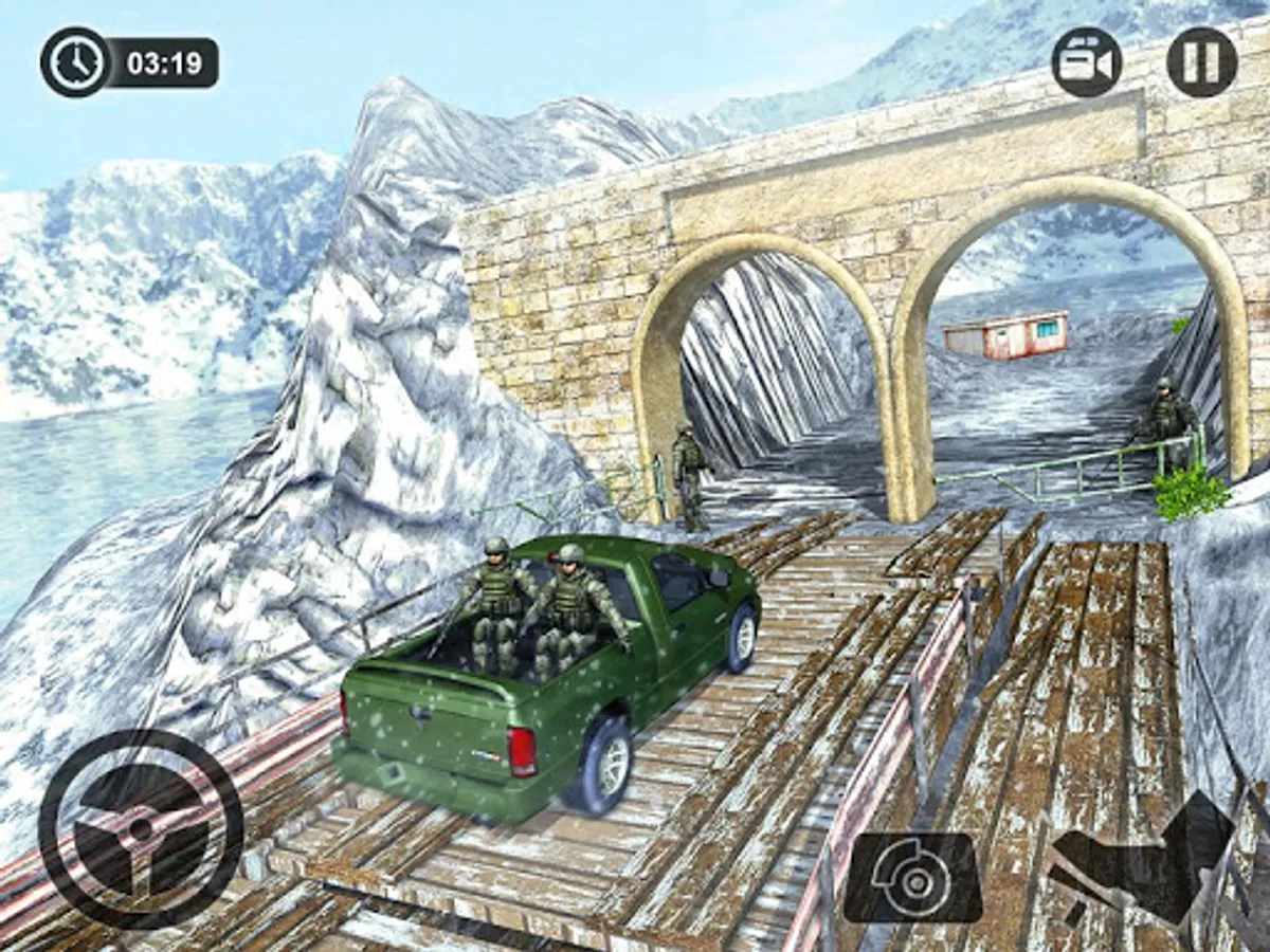 Offroad Army Cargo Driving Mission is a not just an army driving simulator but a professional driver duty to transport army officers. Army military base camp is full of Military men, armed forces and commandos. Avoid hitting any of them by driving save with precision on offroad hill tracks. The time is limited for every transportation mission.