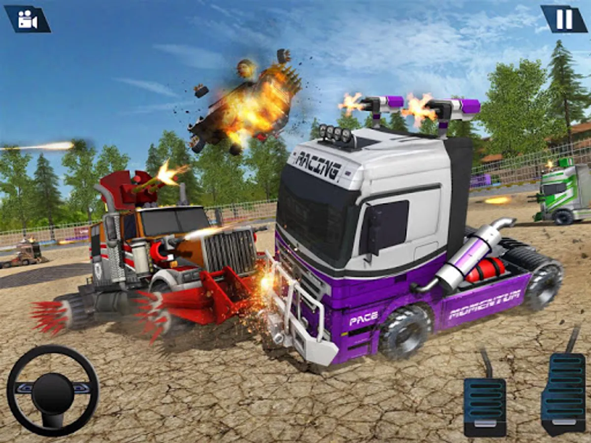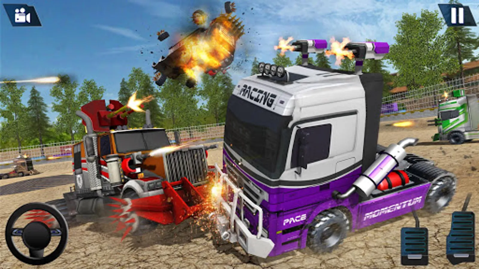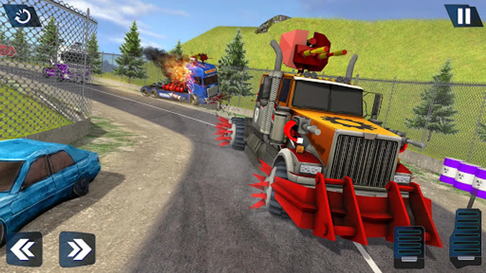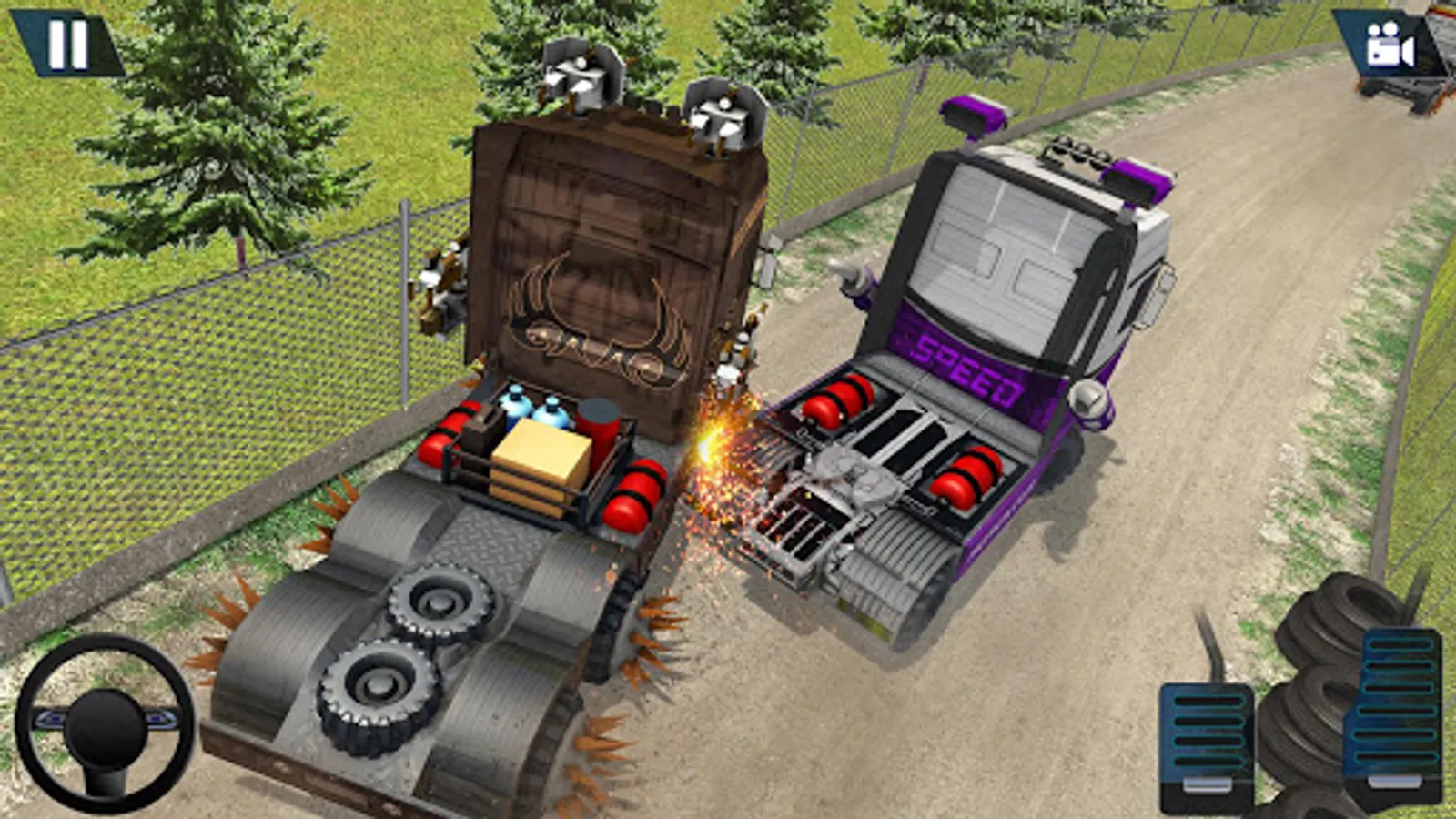This truck demolisher is going to be challenging so take a breath, jump into your driving seat and enter into the combat race of the crash driving game. Get ready for experiencing a deadly truck crash semi-truck destruction game, show your truck jumping, and shooting skills in a dangerous racing game. Speed up your mad truck to destroy your opponent crusher truck in the crash derby 2021 game to become the semi-truck hero.