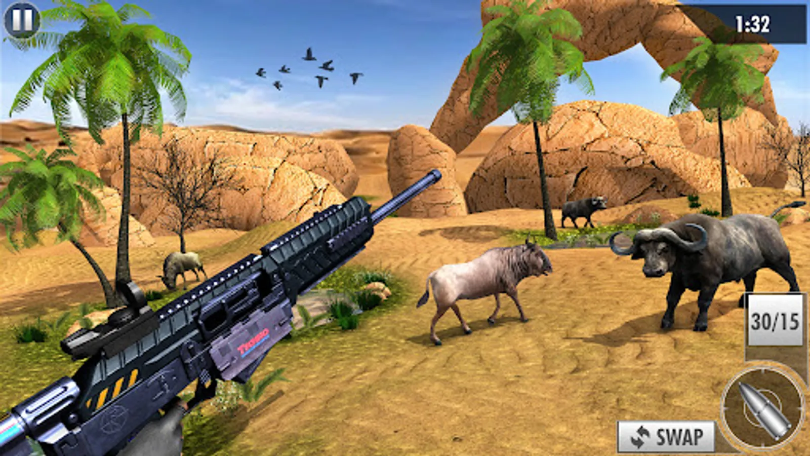 As a wild hunter, you are equipped with modern guns to hunt animals. Use different sniper guns to show your sniper shooting skills by shoot down the jungle animals and become the professional hunter in the animal hunting game. You have played many fps sniper shooting games but now it's time for adventuresome sniper hunting on deer.