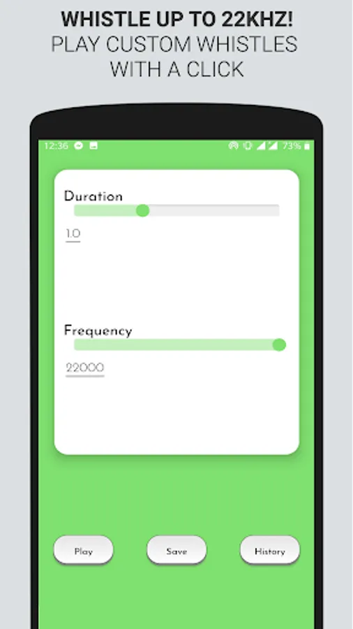 Dog Whistle app generates frequencies ranging from 200 to 22000 hertz (Depends on device's speaker). The Frequency can be easily adjusted to match the dog's hearing range, making it suitable for all breeds.