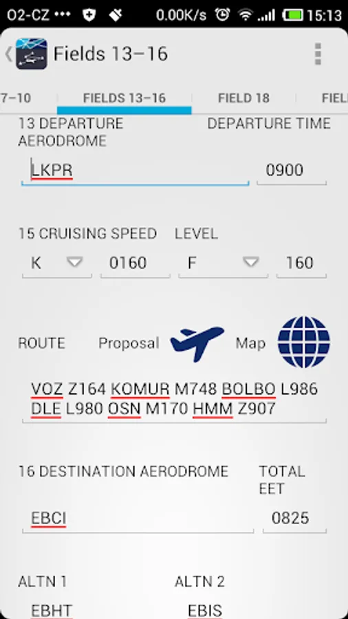 - Filing of new or the modification of filed flight plans in the form and on the map