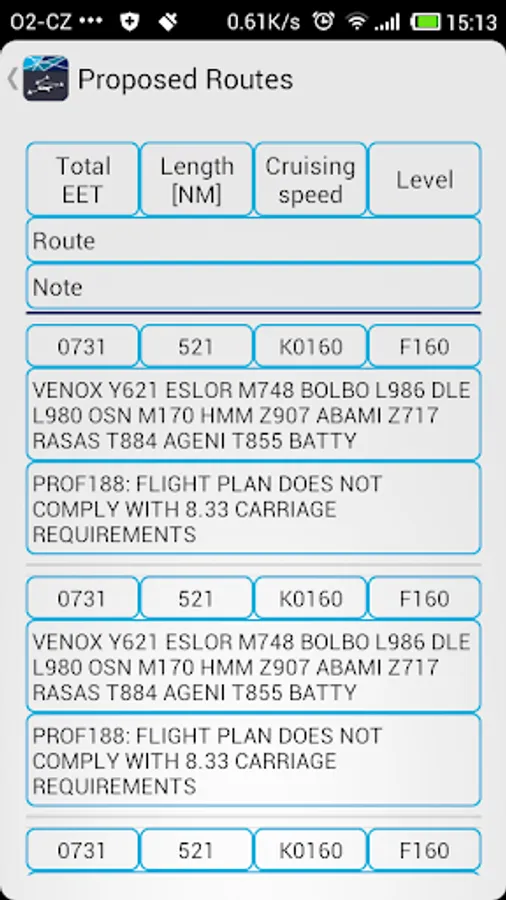 - List of valid flight plans