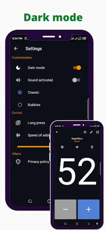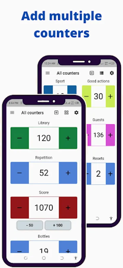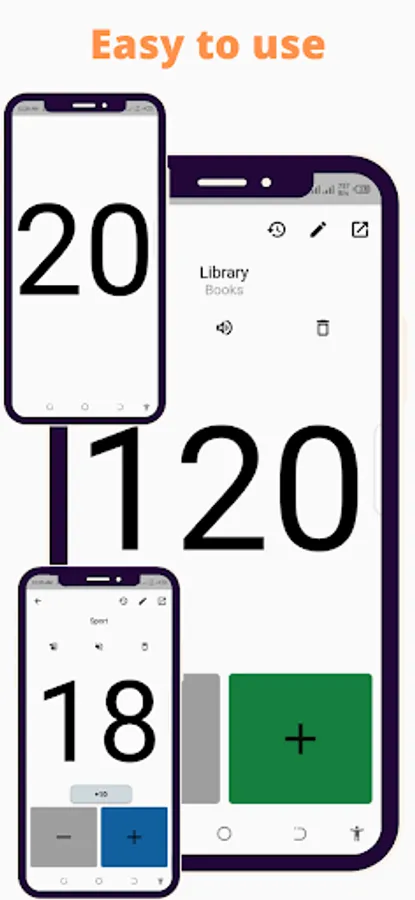 • 🔥 You can configure many features and control how the counting will be performed. Increase and decrease by 1, 10, 100 ... or any number you want.