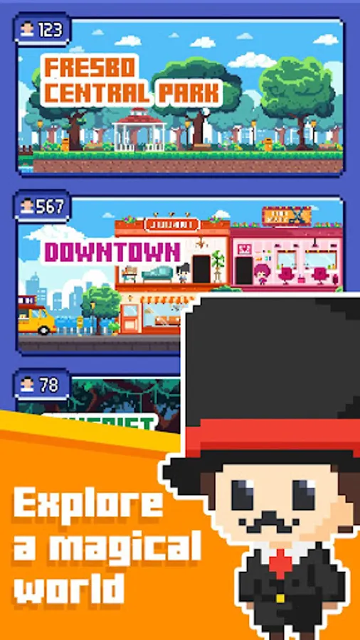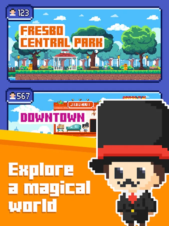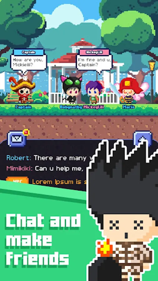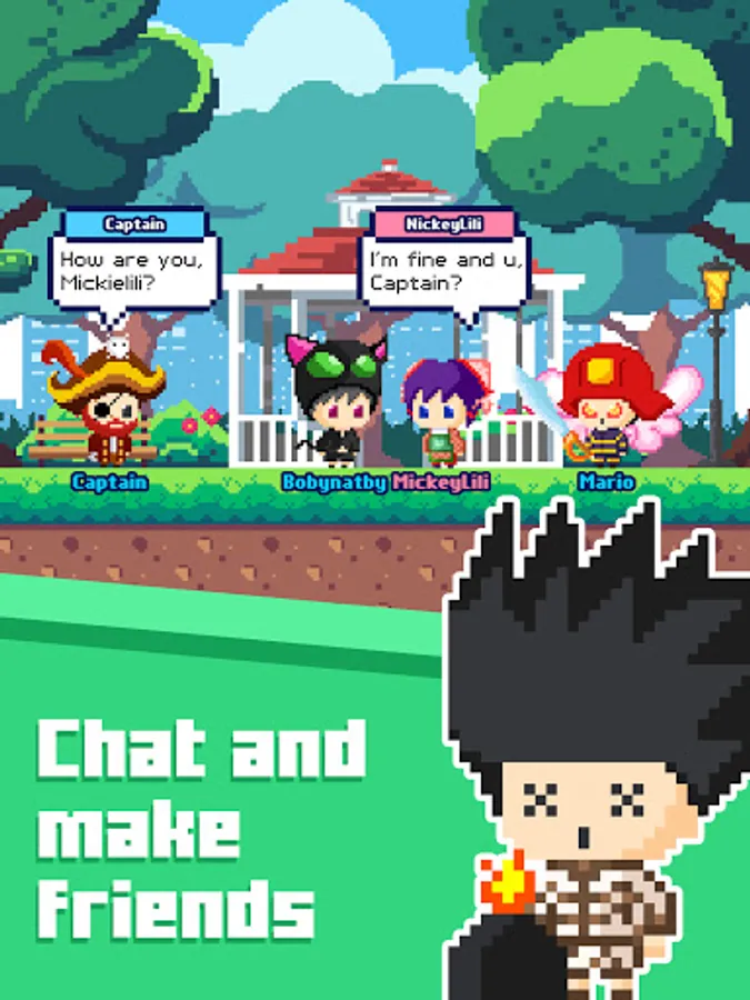 Fresbo Pixel is a casual MMO for everyone where you can grow plants in greenhouse, catch rare fishes, tap on monsters to collect items, build your world in blocks, dress up your avatar, socialize and make new friends!
