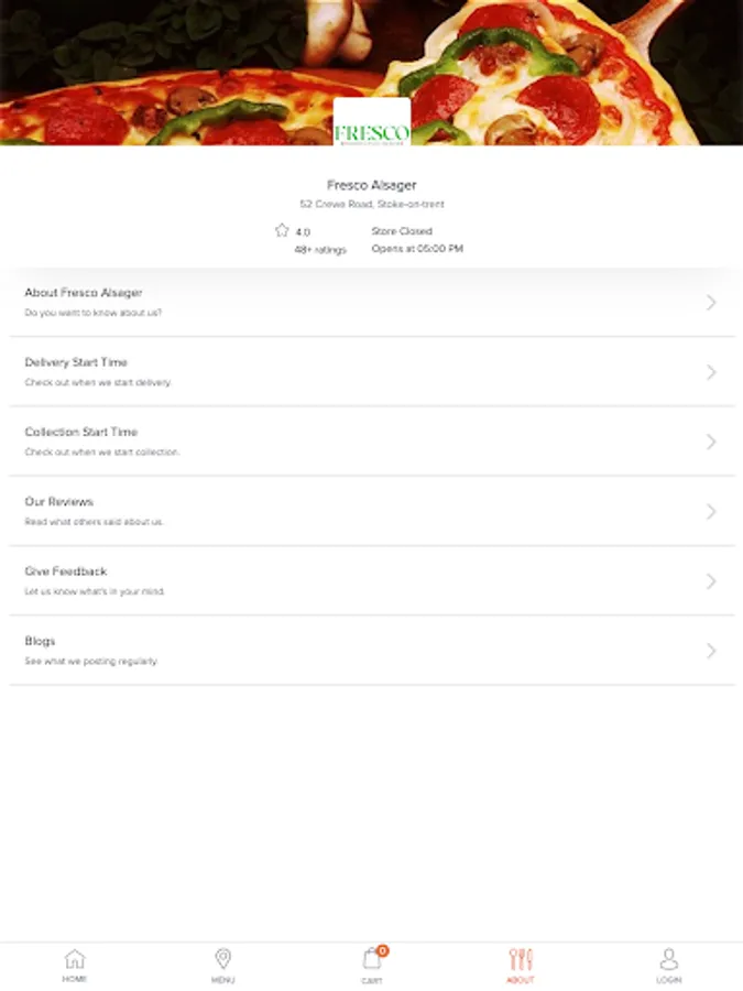 We're also available for ordering on https://frescoalsager.com/storemenu and also on https://kuick.com/order/fresco-alsager