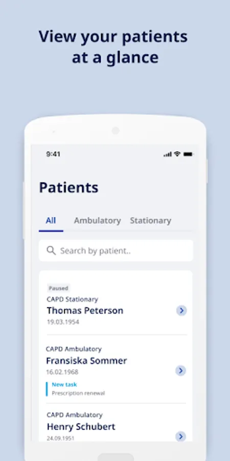 *This application can be used by nurses interacting with PD patients. This application is available for clinics and hospitals with whom there is an existing agreement.