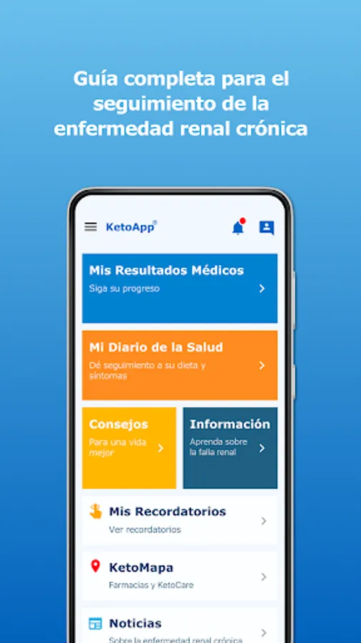 Find support from home with Ketoapp® to improve adherence to chronic kidney disease treatment in patients taking Ketosteril® In this application you will find a guide that will allow you to keep track wherever you are between your nutritional sessions.