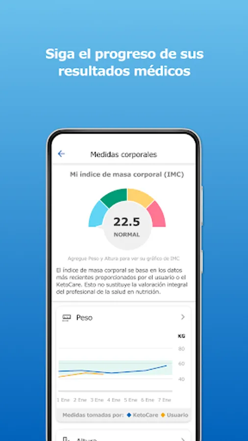 Here you will find a comparison of your results of your body measurements such as weight, your body mass index, blood pressure, glucose, creatinine, urea nitrogen, phosphorus, potassium and albumin. If you are a KetoCare patient, you will be able to see the measurements that are in your file, if you are not yet a KetoCare patient, you will be able to see the measurements that you record. In addition, you can record several blood pressure and glucose values per day, a perfect tool for better control.