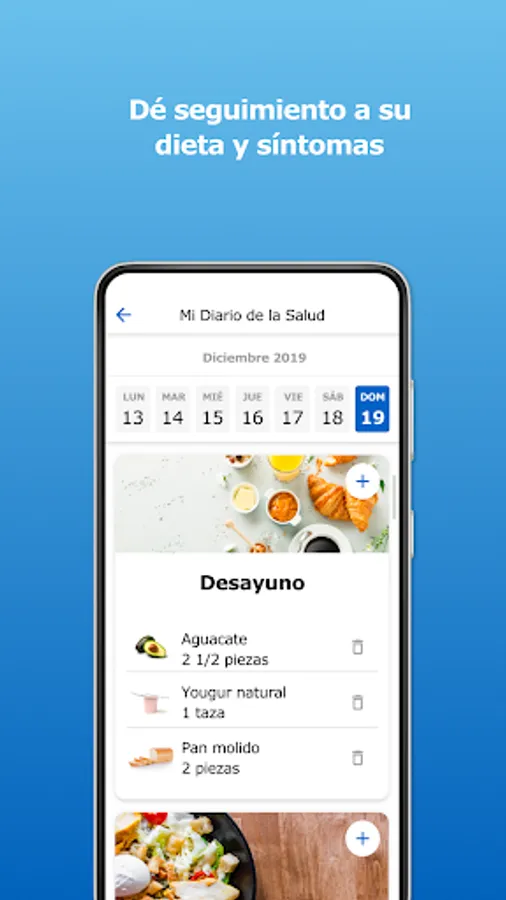 In this diary you will be able to record the food you eat during the day separated by each meal time; breakfast, snacks, lunch, eleven and dinner which will help you maintain a better adherence to your renal diet since it will show you the values of calories, protein, carbohydrates, potassium, phosphorus and sodium. If you are a KetoCare patient, alarms will be displayed when you have exceeded your intake for each nutrient.