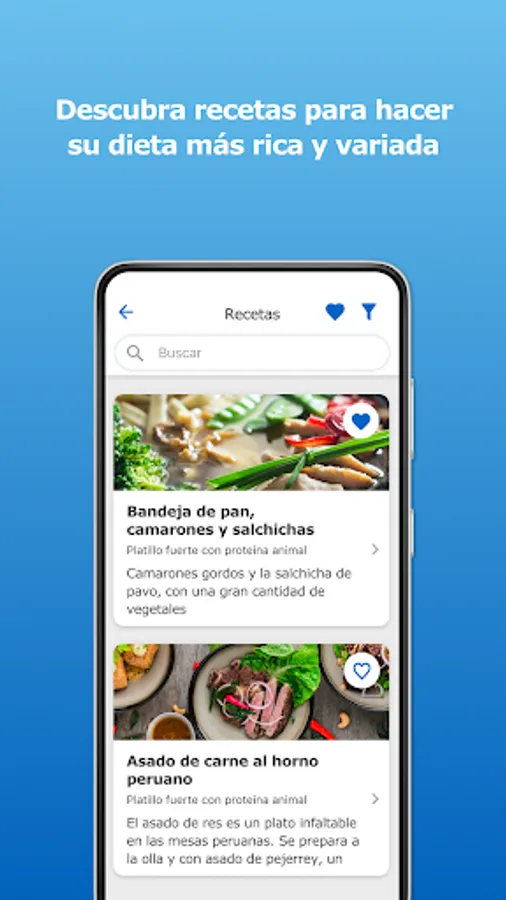 One of the most important tools of this application, since this is where you will find RECIPES specially adapted for the renal diet, the different NUTRITIONAL VALUES to know the characteristics of each food from a reliable source, such as the content of phosphorus and potassium.