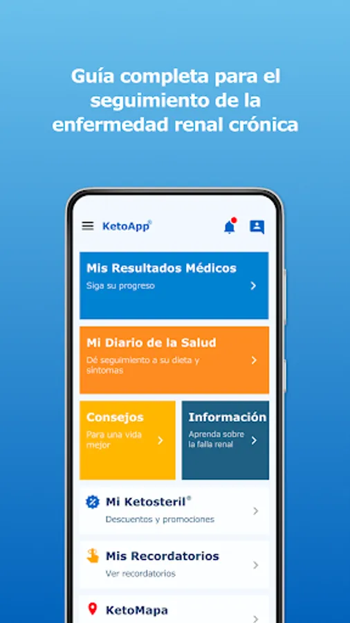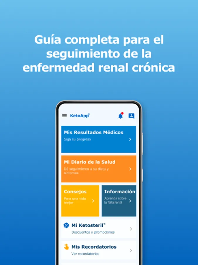 Find support from home with Ketoapp® to improve adherence to chronic kidney disease treatment in patients taking Ketosteril® In this application you will find a guide that will allow you to keep track wherever you are between your nutritional sessions.