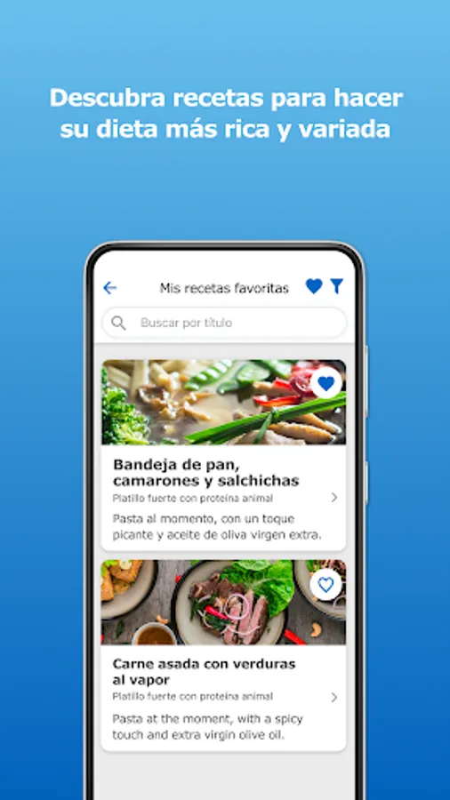 One of the most important tools of this application, since this is where you will find RECIPES specially adapted for the renal diet, the different NUTRITIONAL VALUES to know the characteristics of each food from a reliable source, such as the content of phosphorus and potassium.