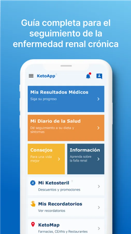 Find support from home with Ketoapp® to improve adherence to treatment of chronic kidney disease in patients taking Ketosteril® In this application you will find a guide that will allow you to follow up wherever you are between your nutritional sessions.