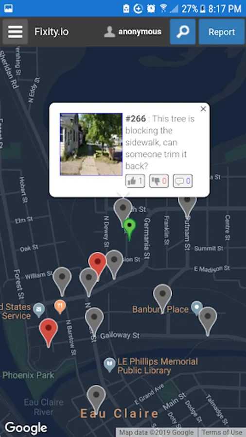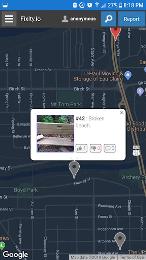 Fixity is an app to report problems and suggestions in your city. When you see an issue or have a suggestion, hit the Report button, type a short note, and upload an optional photo. Your issue will go on the map, and be sent to city staff. Our goal is to make it easier to report issues, and easier to solve them.