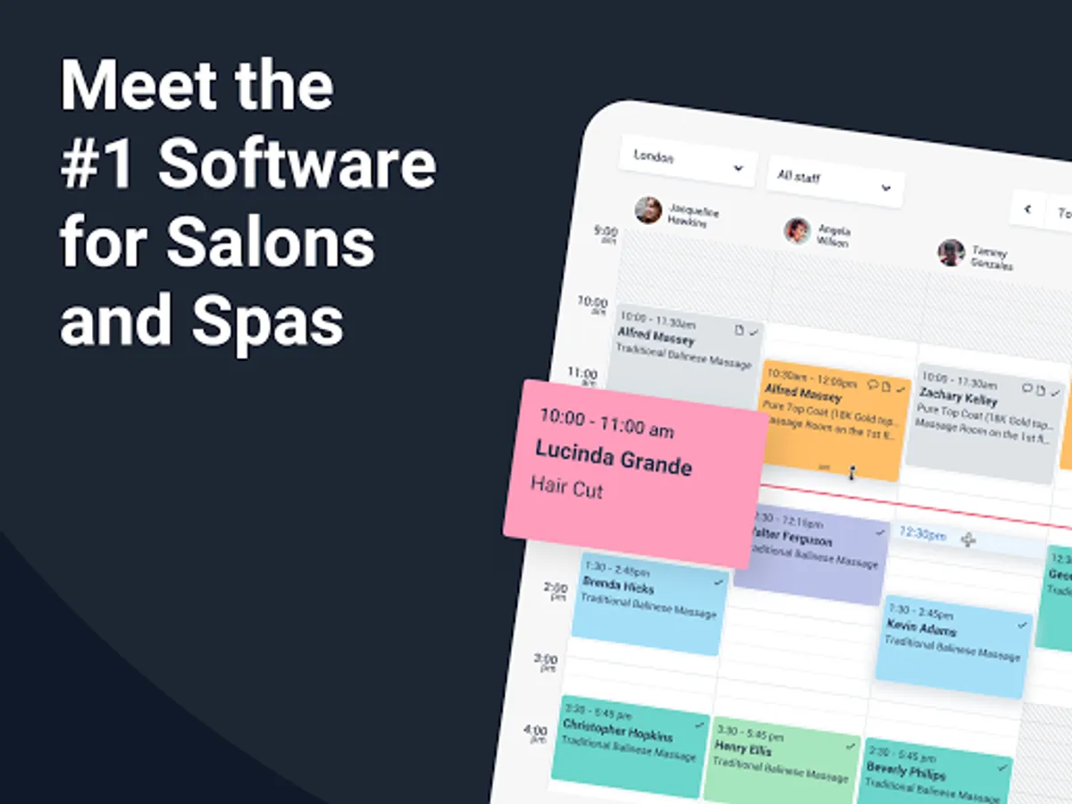 • Incredibly easy to use appointment calendar specifically suited for salons and spas